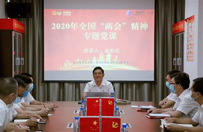 6月29日,崇左金品公司党支部在公司二楼党员活动室举办学习2020年全国两会精神专题党课。公司党支部书记、总经理刘儒明授课。