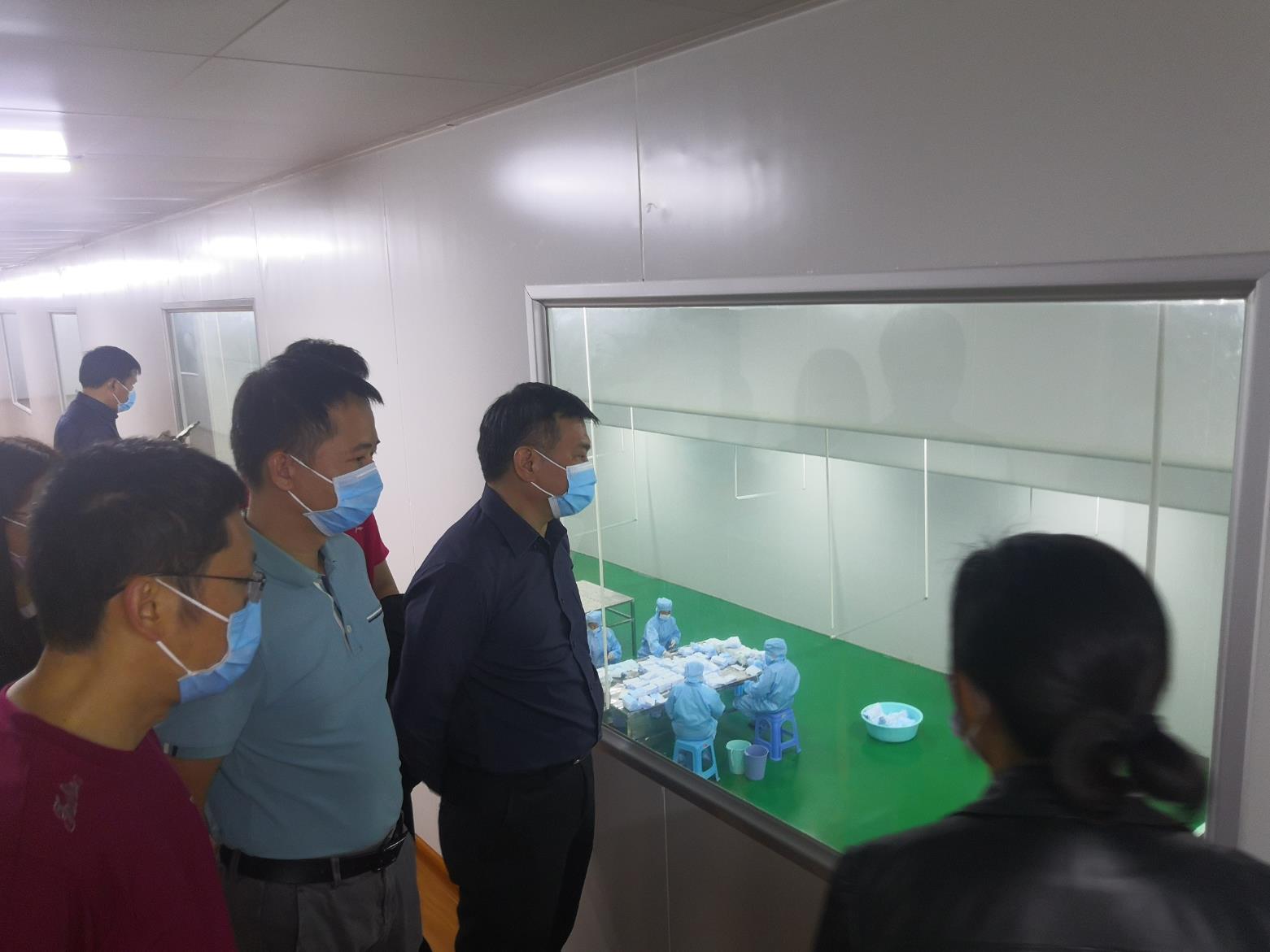 3月1日下午,中国-泰国崇左产业园管理委员会党工委书记赵波到崇左市中泰金品投资有限公司建设运营的国际果品加工基地调研口罩生产项目。管委会党工委副书记黄勤勇、副主任李秋艳,金品公司董事长莫东陪同调研。